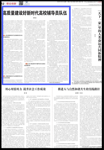 3.拓展“大思政”工作格局的有力抓手。党的二十届三中全会为进一步深化教育综合改革指明了前进方向。完善立德树人机制,健全德智体美劳全面培养体系,离不开“大思政”工作格局的构建与拓展。辅导员是“大思政”工作格局的关键一环,在多元思政队伍中扮演着重要角色。要加强辅导员队伍建设,教育引导辅导员坚持因事而化、因时而进、因势而新,注重分析不同学生的特点和实际,把各项具体的学生事务转化为思想政治教育的载体和手段,推动思想政治工作不断改革创新。