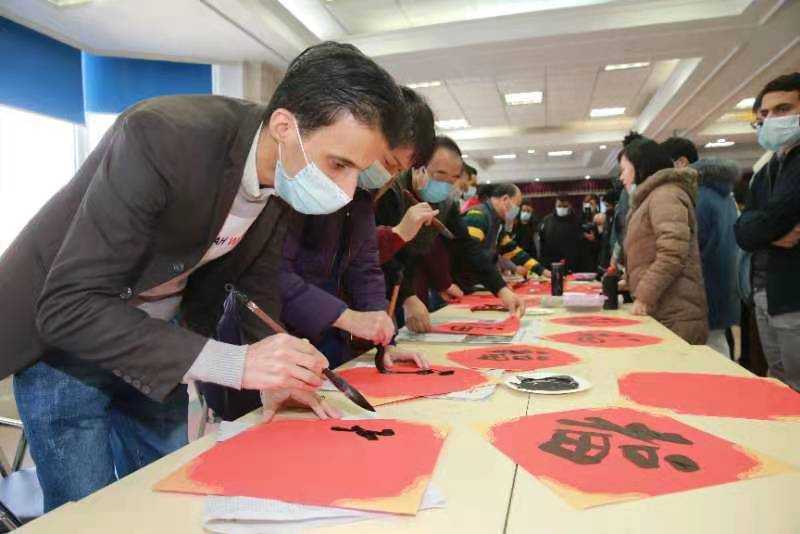 当天,天津大学国际教育学院还举办了“中国传统文化游园会”,来自19个国家的留学生代表欢聚一堂,在文化学者的讲解指导下学习春节习俗,一起写对联、剪窗花,其乐融融体验中国传统文化。“将福字倒过来贴,居然有‘幸福已到’的意义!”来自喀麦隆的财务管理专业留学生奈丽兴奋不已,“今天的活动让我深感中国文化的魅力,更感受到学校对我们这些异国学子的爱护和关心。”