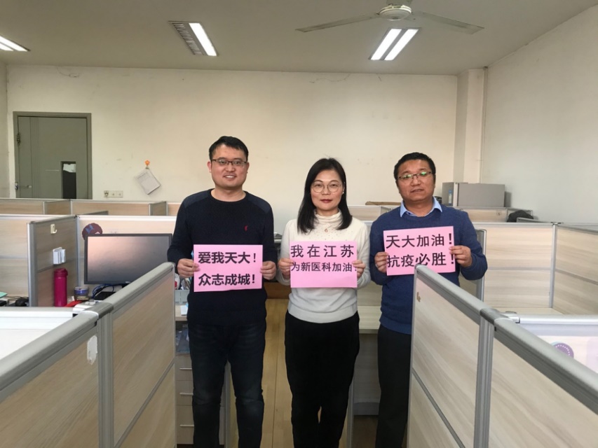 即使身处异地,但爱在同行。身处各地的热心家长还不断发来“天大加油”照片和鼓劲视频,一股股暖流从四面八方汇聚成强大的精神力量,架起一座家校战“疫”连心桥,为全面打赢疫情防控阻击战贡献力量。(中国日报天津记者站)