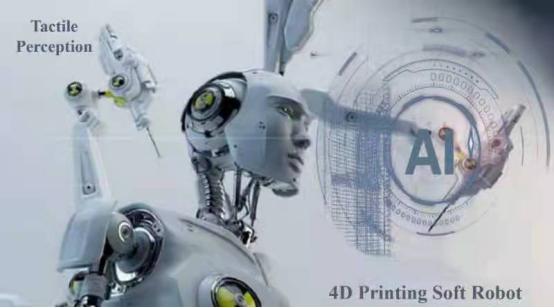 “软体机器人能够适应复杂环境,实现与人类更安全的交互。” 3D打印可以基于数字模型自动准确地将设计思想转化为复杂零件,为软体机器人制造增加“时间”维度——即4D打印,将智能材料加工成具有对热刺激响应行为的动态结构。天津大学封伟教授团队在此基础上通过4D打印对液晶弹性体智能材料进行精确加工,直接获得了具有感知能力和适应性的智能软体机器人。