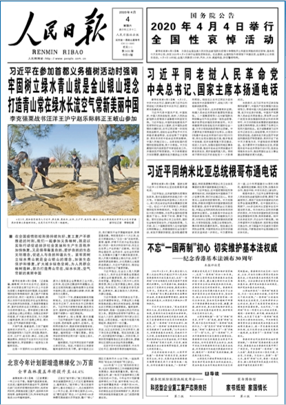 人民日报:http://paper.people.com.cn/rmrb/html/2020-04/04/nw.D110000renmrb_20200404_1-01.htm