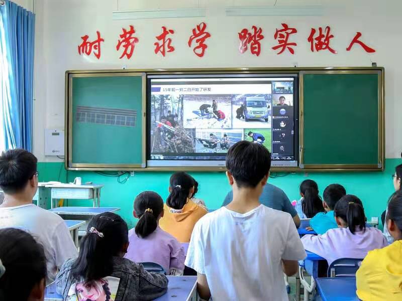 天津大学自动化学院“宕动初心”实践队为宕昌当地的孩子们带来了一份特殊的礼物,他们邀请全国劳动模范、中国青年五四奖章获得者齐俊桐教授通过视频连线的方式讲授了一场精彩的“云课”。齐俊桐手拿无人机,面对着千里之外一双双好奇的大眼睛,深情讲述着他带领科研团队用自己研发的无人机参与地震救援,监控房屋损毁和救灾帐篷,为灾难搜救赢得了宝贵时间的故事。他鼓励孩子们努力学习、热爱科学,“要在心里种下一颗用科技创新报效国家的种子。”