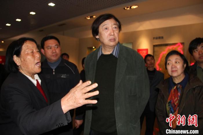 2011年4月,冯骥才一行参观西沟展览馆。图为申纪兰为冯骥才一行讲解影像资料。(资料图片) 陆祁国 摄