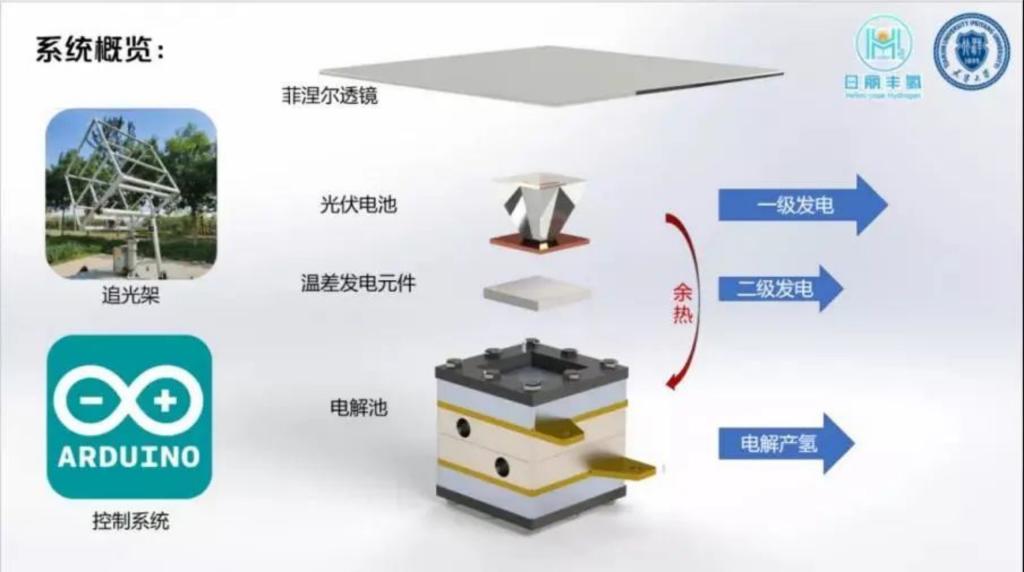 “现有的新兴太阳能电解制氢方法基本都是利用光伏阵列发电后,再将电能配送给电解槽电解制氢,光伏发电装置和电解制氢装置是分离的,这使得大量的光热被流失浪费,成本较高且制氢效率低。”“日丽丰氢”团队队长苏上淳解释说。