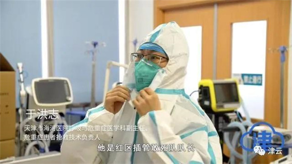 于洪志是“红区”插管敢死队队长,他要求自己坚守在最困难、最危险的岗位上,常常挂在嘴边的口头禅是:“只要我在,我第一个上。”保卫津门百姓的健康,他无怨无悔。