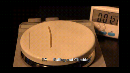 该管状自主软体机器人通过对热的感知,可以自主改变自身形状进而调整运动速度和方向。自主控制滚动方向的特性使得这种软体机器人有类似昆虫触角的触觉感知能力,让它能够探测前方道路上的障碍物,根据障碍物的高低实现翻越或折返。“当样品机器人以一定角度放置在倾斜的加热板上时,样品依然可以向上自主滚动。” 封伟教授说,“这种自主软体机器人的整个驱动过程是自动的,无需改变环境因素,机器人就能够在脱离人工控制的情况下完成任务。”