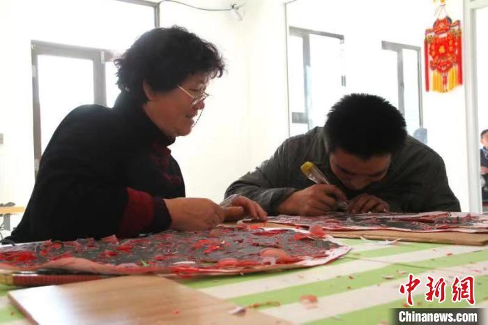 刘海兰教当地农民制作“潞王虎”。 周珪喆 摄