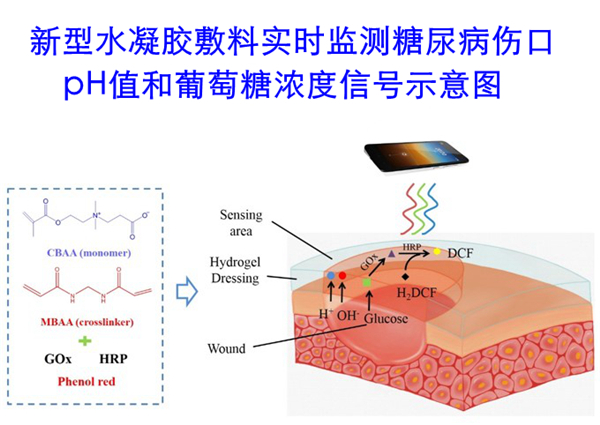 中国青年报客户端天津1月21日电(中青报·中青网记者胡春艳 通讯员焦德芳)近日,天津大学张雷教授团队在糖尿病伤口监测和促愈合方面取得重要进展,成功研发新型水凝胶敷料。这种敷料能够将糖尿病伤口的pH值和葡萄糖浓度信号转化为颜色信号,利用手机采集图像并进行数据分析,医生和患者只需手机“扫一扫”就可以实时监测伤口状态。相关研究成果现已发表于材料领域权威期刊《先进功能材料》。