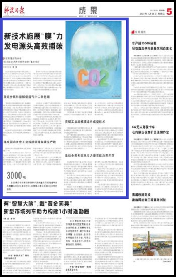 目前,在全国多家单位的协同努力下,膜法捕集CO2工业示范装置正在南京建设中,其运行及系统评价将在年内完成,预计将实现CO2捕集率≥90%、产品气浓度≥95%的烟道气碳捕集目标。