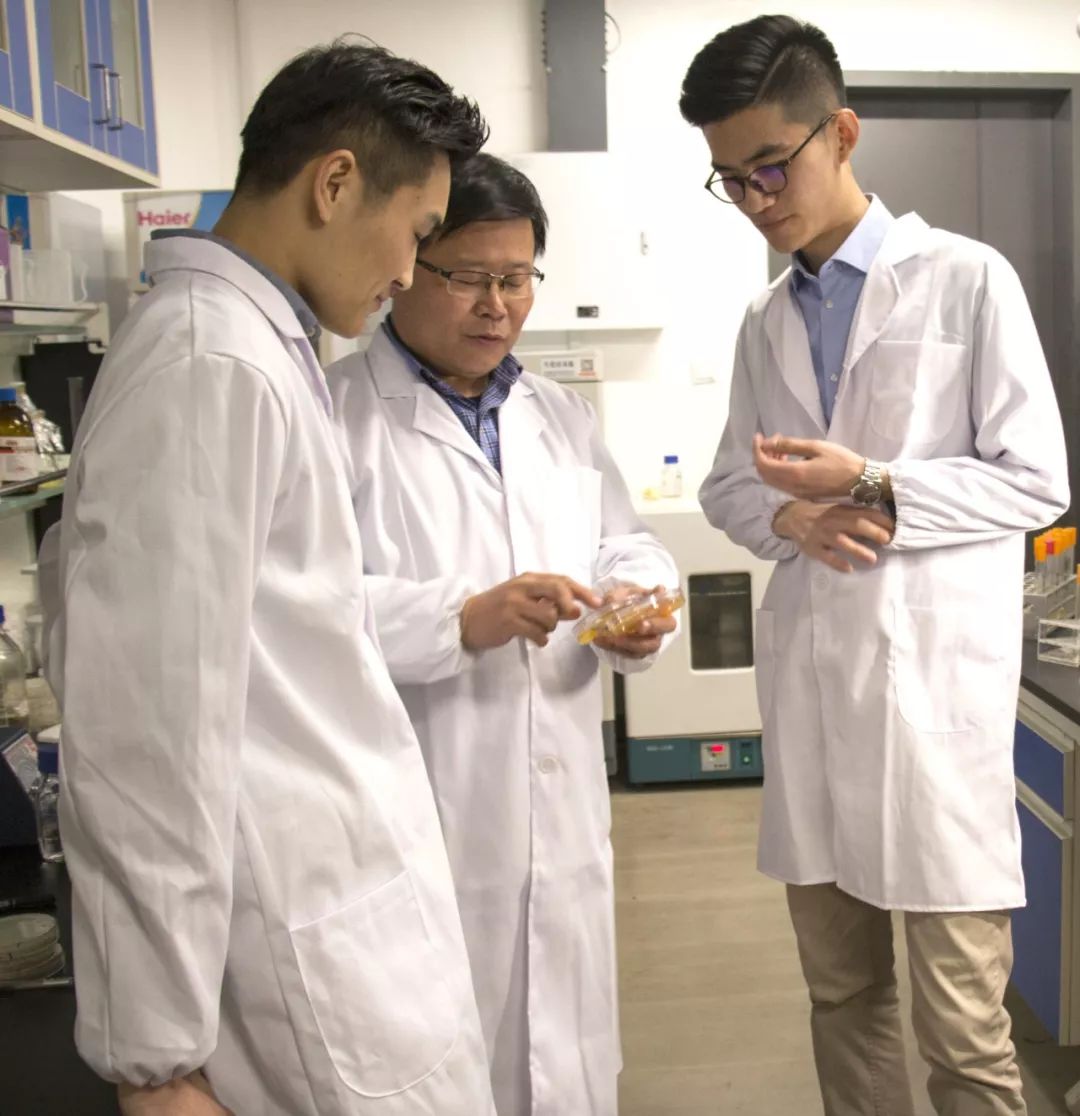 元英进教授与两篇《Science》第一作者合影(左一:吴毅;中:元英进教授;右一:谢泽雄)