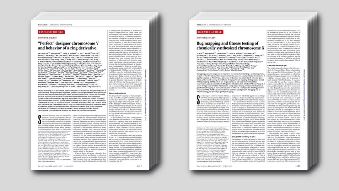 2017年3月10日,天津大学化工学院元英进教授领导的研发团队在《Science》期刊上发表两篇论文,成功实现了酵母5号和10号染色体的化学合成,在人工基因组化学再造方面取得了重大突破。团队解决了长染色体精准定制合成难题,并进一步提出了基因组重排精准控制方法。