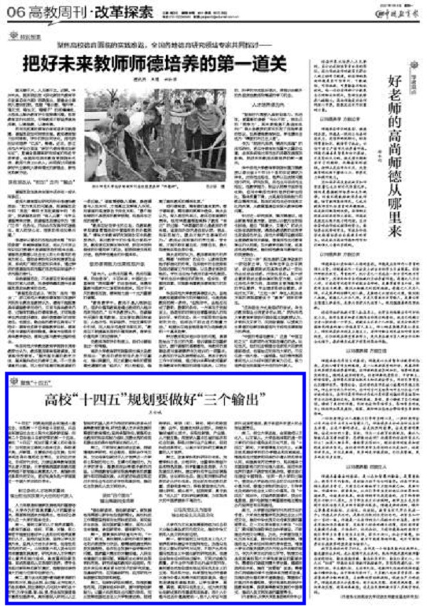 “十四五”时期是我国全面建成小康社会,实现第一个百年奋斗目标后,开启全面建设社会主义现代化国家新征程、向第二个百年奋斗目标进军的第一个五年。高校“十四五”规划的重大意义和价值在于:如何落实立德树人根本任务,积极谋大局、开新篇、支撑经济社会发展;如何审视自身价值和社会责任,主动应对变化,引领时代步伐,为建设高等教育强国作出更大贡献;大学要围绕国家战略向国家持续不断地输出高素质人才、高端科技成果和先进文化,更好地肩负起兴学强国这一中国大学共同的使命。
