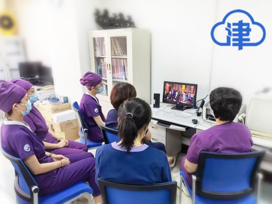 天津医科大学总医院医护人员通过网络收看大会直播。