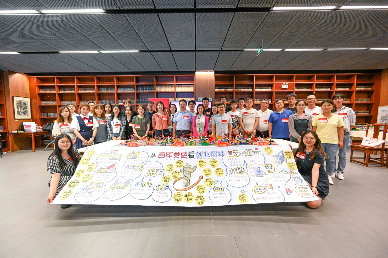 这场“从百年党史看创业精神”为主题的党史学习教育由天津大学宣怀学院联合校团委和马克思主义学院共同举办。活动创新性地将“乐高认真玩”和“bikablo视觉引导”教学技术与党史学习相融合,活灵活现地展现了党这一百年来由小到大、由弱到强,不断从胜利走向更大胜利的创业史和奋进史。参加这次活动的同学来自天津大学多个学院本、硕、博不同阶段,其中有校园创业的“老总”,有正准备参加中国“互联网+”大学生创新创业大赛的选手,还有更多对创新创业及党史学习怀有浓厚兴趣的同学。