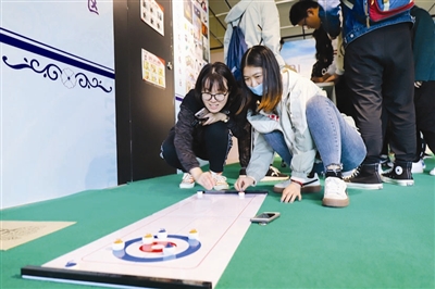 展览还设置了互动体验区,在这里能够亲身体验冰壶、拓印、投壶、拳击等项目,还可以手持奥运火炬拍照留念。