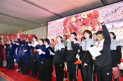 这次在天津美术馆举办的《国家荣誉——中国女排精神展》,正逢国庆、中秋双节假期,为家乡、为祖国赢得了无数荣誉的女排姑娘,也在见面会的最后环节中,集体演唱了一首《歌唱祖国》。 (据津云)