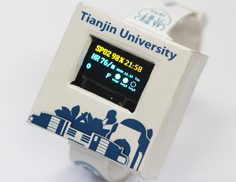 在天津大学精仪学院的实验室里,我们看到了刚刚研发成功的可溶性智能手表。该手表和传统的智能手表一样,具有传感器,可以精确测量心率、血氧水平和步数,并通过蓝牙连接,将这些数据传输到手机应用程序;有机发光二极管(OLED)屏幕可以显示相关手机的日期、时间和消息。但与普通智能手表不同的是,当这款智能手表被完全浸入水中时,其外壳和电路会在40小时内完全溶解,遗留下来的仅是OLED 屏幕、电阻器、电容器等可再次利用组件。