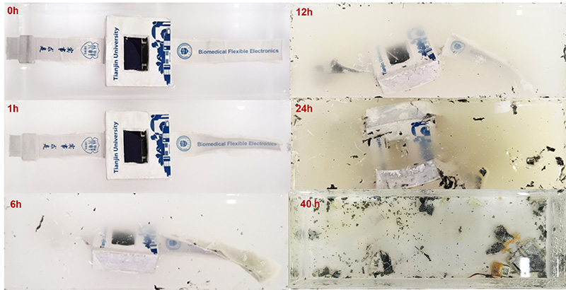 浸没在水中40小时,该智能手表的融解过程。天津大学供图