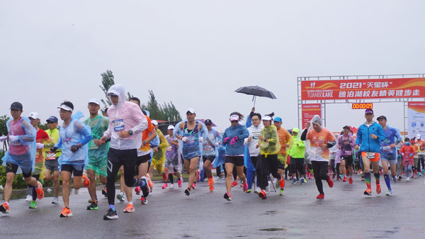 本次活动以团泊湖鸟类自然保护区作为起终点,设21公里、10公里、5公里三个项目,吸引了各高校300多名跑步、徒步爱好者参加。