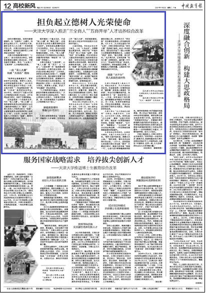 天津大学是国家教育部门“三全育人”综合改革试点单位。学校紧紧围绕立德树人根本任务,不断创新形式载体,深化“三全育人”“五育并举”人才培养综合改革。
