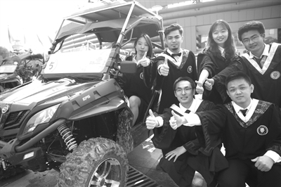 ①天津大学毕业生驾驶自己研发的无人车来到毕业典礼现场