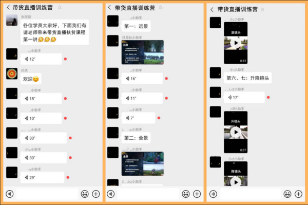 训练营的课程分为“理论”和“实操”两部分:“爆款视频剪辑步骤教学”“流量增长与粉丝维护”“直播问题反馈及心态建设”“话术解读及脚本写作”“直播实战3小时”......生动的课程为从未接触过电商卖货的学员们打开了致富新大门。课程结束后,培训团队还将对学员进行后期指导,协助他们完成产品直播策划和后期制作,帮助学员成为熟练的“带货达人”,独立自主“引流带货”。