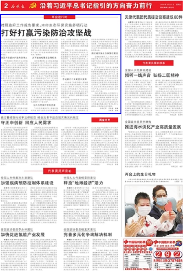“今年政府工作报告中生态环境所占篇幅不小,我认为目标明晰、定位精准。”全国人大代表、市环境保护科学研究院副院长温娟很振奋,她把报告中涉及生态环境的内容一一作了标注。她介绍,根据本市打好污染防治攻坚战2020年工作计划具体安排,今年本市实施保蓝天、保碧水、护渤海、保净土等多项行动,持续实施一批项目,确保取得实实在在的治污成效。