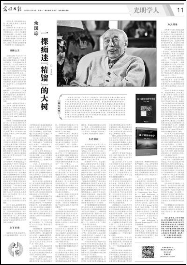 如果哪天有课,我都会凌晨4点起床,一遍遍审视讲课内容。即使这门课已经教授很多年、很多遍,我也要充分备课,更新教学内容,如此精益求精,就像精馏提纯的过程。这是我对“师者”身份的尊重。而这份为人师表的使命担当,则是余国琮先生传递给他每个学生的宝贵财富。