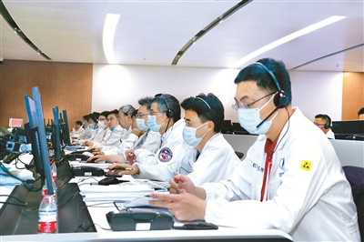 图为近日,工作人员在北京航天飞行控制中心对天问一号进行监测。