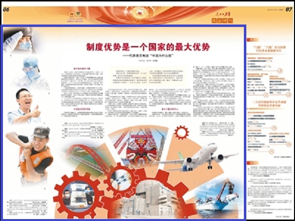 “回顾一年来,中国成为全球唯一实现经济正增长的主要经济体,三大攻坚战取得决定性成就,科技创新取得重大进展,改革开放实现重要突破,民生得到有力保障……我深切感受到制度优势是一个国家的最大优势。”周勇说。