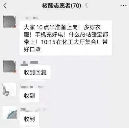 天津大学北洋园校区从1月8日17:00 开始执行封闭管理,学校迅速组织开展全员核酸检测。许多同学在微信群报名争做志愿者,协助医务人员进行核酸采集工作。
