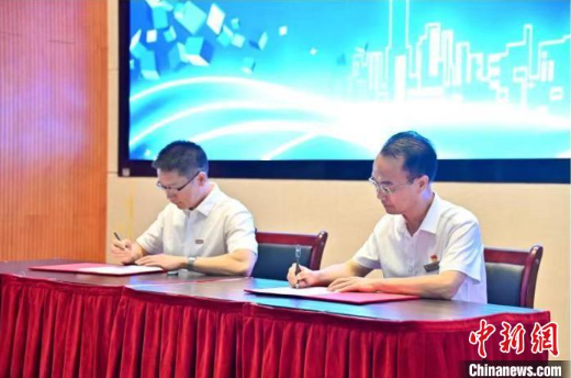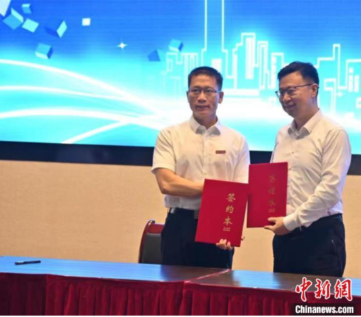 6月15日,福建技术师范学院副校长陈志勇(左)与三明市农业学校校长罗世钦签署了附属校协议。 胡俊 摄