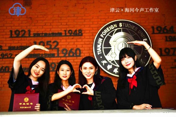 天津外大毕业生们创意合影,留下珍贵的青春记忆