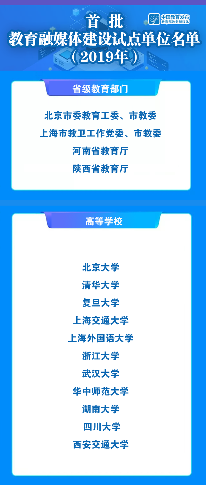 一起来看首批15家教育融媒体建设试点单位和第二批试点建设单位名单↓↓↓