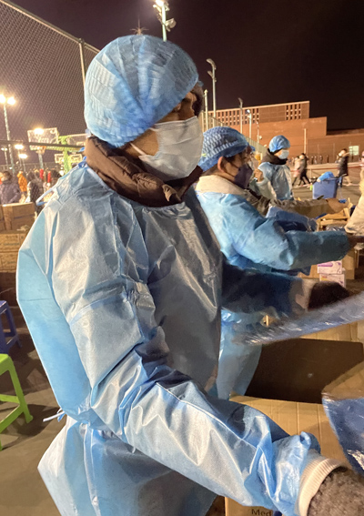 1月12日深夜气温骤降,一度达到零下五度,在天津大学北洋园校区第三轮全员核酸检测的现场,一位巴基斯坦留学生火线报名加入志愿服务队伍,“我想像天大其他老师和同学一样,无私奉献,帮助他人。”
