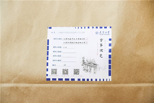 发放时正逢双十一,学校特意提前选出10款羽绒服、15款围巾、2款保暖内衣作为冬装备选,并将这些冬装备选设计成了问卷星制作成选购链接。同学们可以通过链接将自己喜欢的衣物加入“购物车”,由学校买单在“双十一”当天送到同学们的手中。为让同学们更能感受到购物狂欢节的气氛,天津大学还为同学们设计了暖心快递单贴在冬装包裹上。每个包裹上贴着的统一快递单号记录着学校已经连续29年为家庭经济困难新生发放御寒冬装这一温暖之举。此外,快递单上印着的“实事求是”的校训也寄予了学校对学生的希冀。
