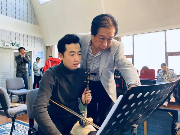 天津京剧院国家一级演奏员汤振刚指导张金乘 资料图片