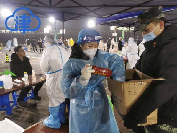 “大家自己觉得冷都没有说话,但是当大家发现,现场做核酸检测的医护工作者双手冻僵以至于打不开试管的时候,都觉得特别心疼。”姚京涛动容地说,“所以我们就开始自发地收集饮料瓶装上开水送给医护人员,让他们暖暖手,这件事特别让我感动。”
