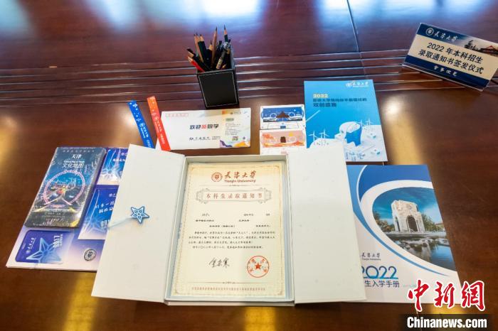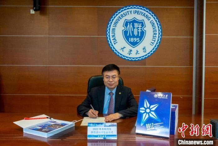 中新网天津7月12日电 (孙玲玲 刘晓艳 赵宇辰)“杨卓然同学,祝贺你成为一名光荣的‘天大人’。”2022年7月11日,天津大学校长金东寒郑重地在编号为“001”号的本科生录取通知书上签下自己的名字,2022年首批本科生录取通知书也承载着祝福和期冀,陆续寄往全国各地新天大人手中。