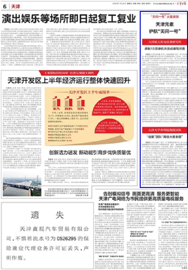 《天津日报》 2020年07月24日 06版 天津