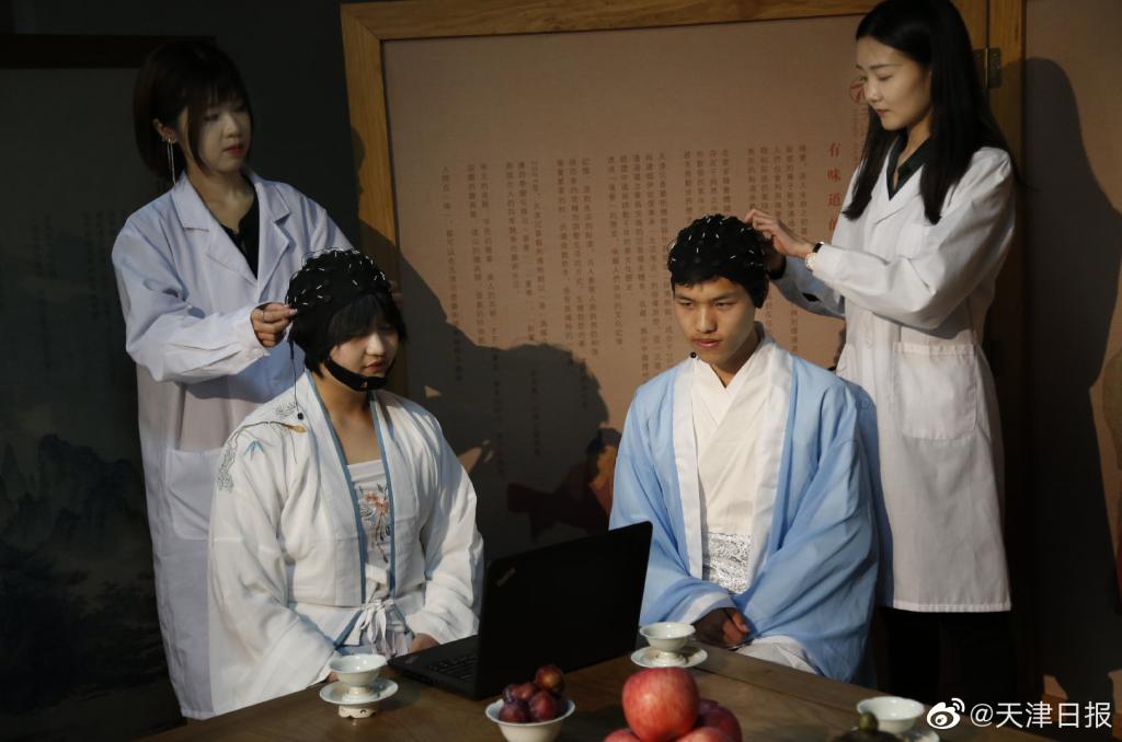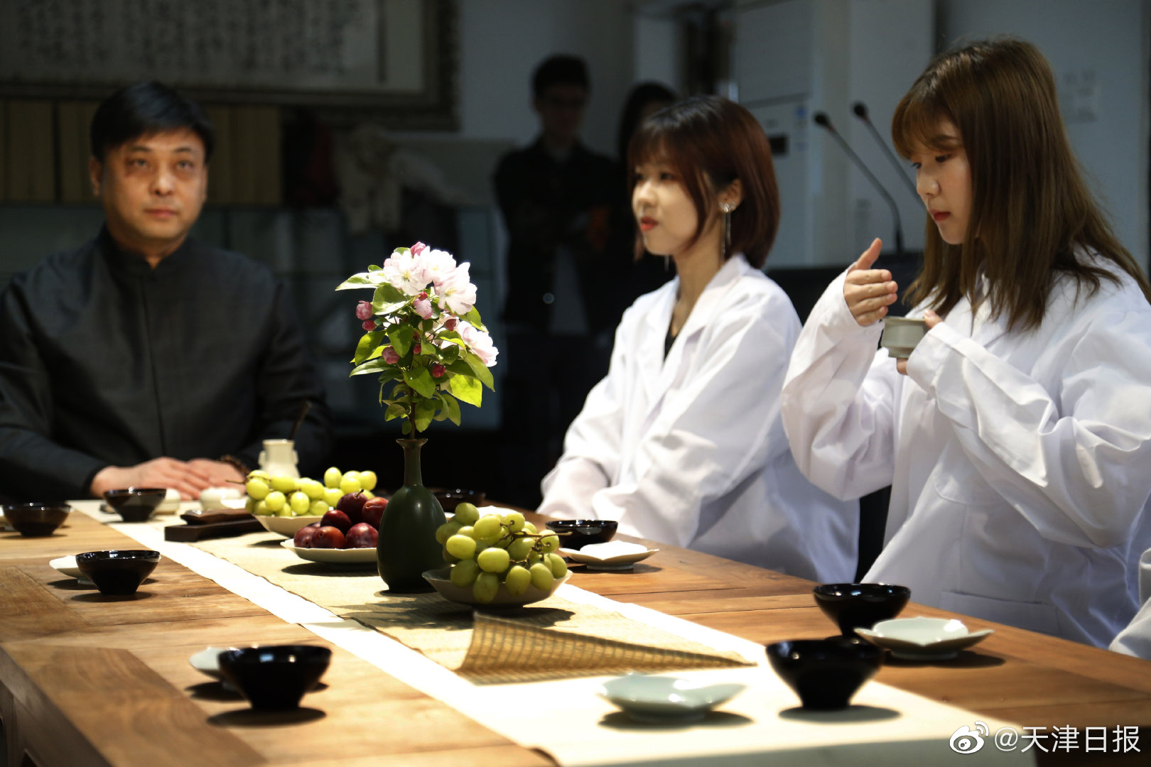 画(花)堂(棠)相(香)会——相会的不仅是传统生活中诸多美好事物,还是现代理工科技与传统生活美学的邂逅。4月2日下午,天津大学联合天津沉香艺术博物馆,以“花棠相会”为题,在王学仲艺术研究所开讲传统生活美学公开课。以互动式、浸入式教学方式,学生们身着汉服,簪花游春、携诗投壶、瓶花贮景、海棠入画……在参与和聆听中感受中国传统香文化中的“自然”审美,迎接3日开幕的海棠季十年之约。3日上午,还将在天大老校区铭德道设置“青春告白亭”,举办“青春向党告白”主题活动。青年大学生、抗疫一线医务工作者、扶贫支教学生、入党积极分子、90后青年科技工作者等杰出代表,在这里自发录制告白微视频,向英烈先贤致敬,表达对党的真情告白。(记者 姜宝成 摄影报道)