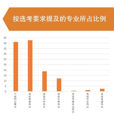 例如,天津大学是传统理工科强校,物理、化学科目覆盖的专业范围很大,根据教育部《指引》的规定,该校有约一半的专业必考物理,例如自动化类、电子信息类、计算机类、数学类等。但有些专业也不是非考物理不可,如经管类的金融学、工商管理、财务管理专业要求物理、化学、地理3门科目中考生选考其中一门即可报考;建筑学、城乡规划、风景园林专业要求物理、地理、历史3门科目中考生选考其中一门即可报考。