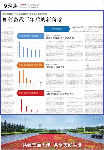 南开大学招生办负责人也表示,相比过去简单的文理分科,“新高考”政策下,学生的知识结构和思维方式将更为多元,可以有效避免之前出现的一些极端现象。在目前,高考仍然是以公平为前提,高考分数依然是院校主要录取依据的环境下,新高考还是尽力做到了给学生更多选择空间,让学生可以按自身优势和兴趣学习,也有助于学生的健康成长。因此,家长应多尊重孩子的个性发展,鼓励其以兴趣为主选择科目、选择院校方向。