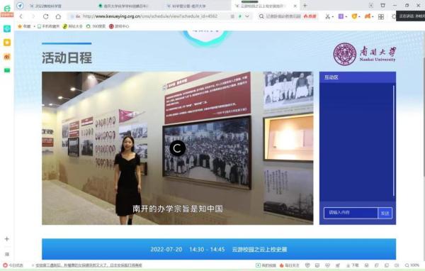 开营当天,天津大学与南开大学带领大家云游校园,领略两所学府的百年积淀。来自天津市第五十五中学的辛飞扬有幸参加了本次高校科学营天津大学分营,他向记者介绍道:“在得知有这样的一个参加高校科学营的机会我在第一时间报名参加。今天上午看完了开幕式的直播,不仅让我对科学营有了进一步了解,也感受到了科技的迅猛发展,加深了我对于未来大学生活的憧憬。希望未来几天我可以与全国各地的新朋友一同交流,更能学习到万物物联前沿科学技术以及斗拱这一中国传统文化的缩影,拓宽自己的视野,感受科技魅力。”