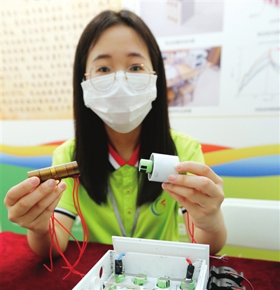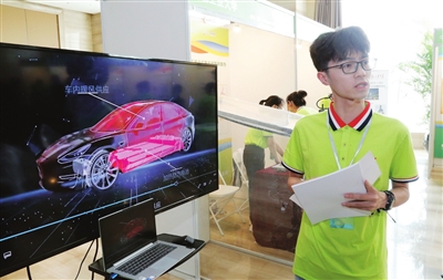 特等奖,天津大学的“醇暖车开”,用作电动汽车辅助热源的甲醇多孔介质燃烧器。 本报记者 姜宝成 摄