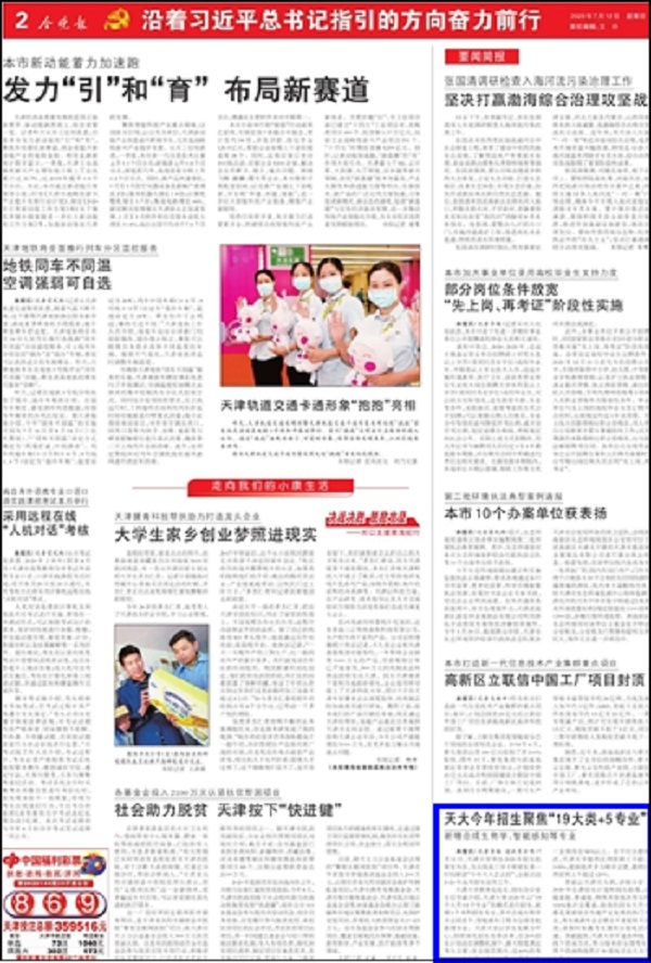 本报讯(记者 李杨 通讯员 方明)7月11日,天津大学举办2020年招生政策发布会,为全国高三学子和家长第一时间解读“今年天大怎么招”,全面启动2020年高考招生宣传工作。