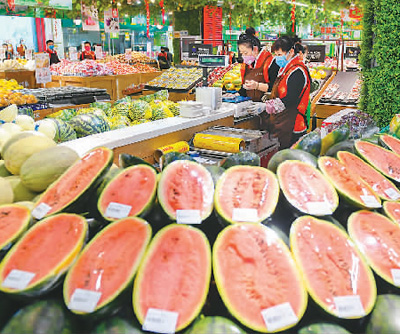 工作人员在吉林省长春市一家大型连锁超市内忙碌。新华社记者 许 畅摄