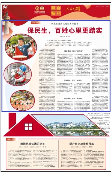 在常态化疫情防控前提下,如何稳住就业基本盘,扎牢民生保障“安全网”,答好脱贫攻坚“加试题”?看到今年政府工作报告列出的一份长长“民生清单”,代表委员们向本报记者表示,报告很务实、很暖心,民生“底盘”稳住了,老百姓心里就更加踏实。