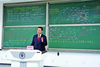 把地图搬到黑板上,最快也要一小时零一刻钟。但是只要具备条件,程斯宇还是会用粉笔一丝不苟地画下来。他说:“通过这张图,已经有许多同学开始关注这段历史,对党史课程有了更全面的了解。”