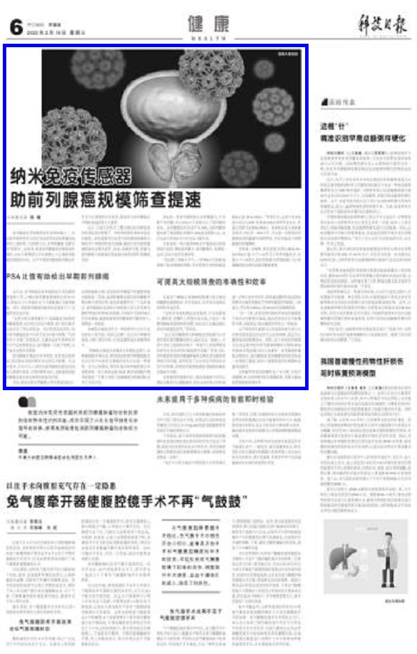 科技日报:纳米免疫传感器 <BR/>助前列腺癌规模筛查提速